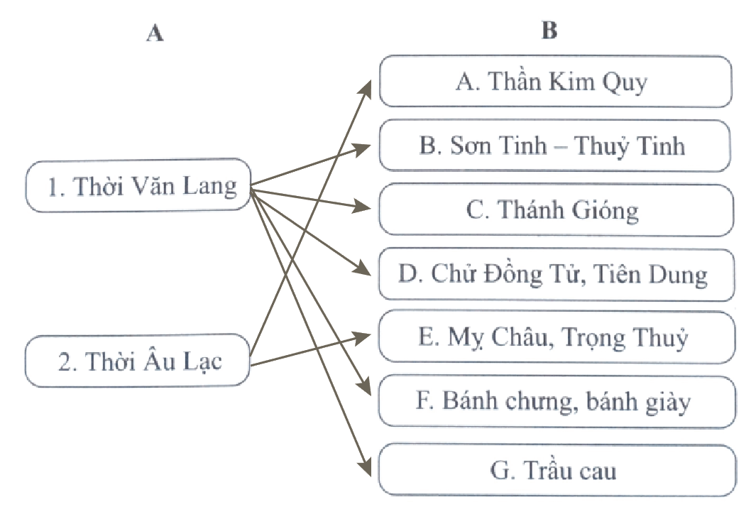 Câu 8 trang 27 sách bài tập Lịch Sử 6: Nối ý ở cột A với ý ở cột B sao cho phù hợp.