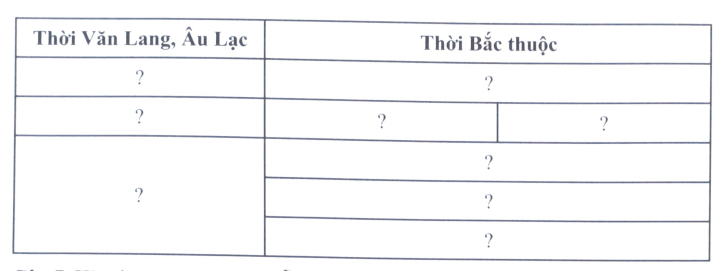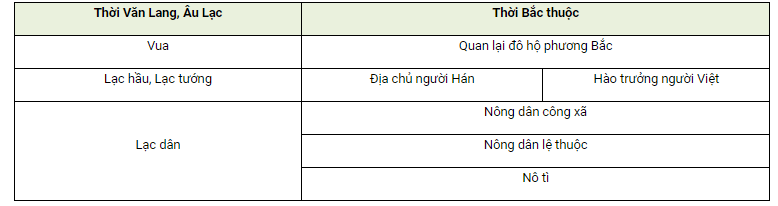 Câu 6 trang 28 sách bài tập Lịch Sử 6: Hoàn thành bảng sự chuyển biến xã hội thời Bắc thuộc so với thời Văn Lang, Âu Lạc theo mẫu dưới đây: