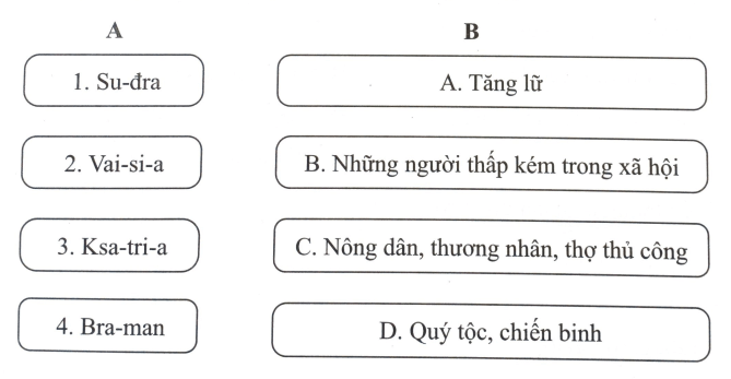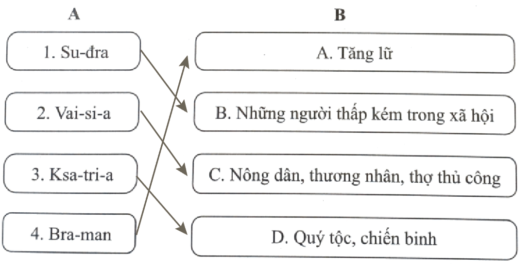 Câu 5 trang 15 sách bài tập Lịch Sử 6: Hãy nối ý ở cột A với ý ở cột B sao cho phù hợp.