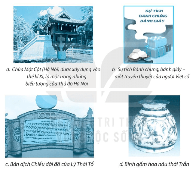 - Hình a (chùa Một Cột) - Hình d (bình gốm hoa Nâu thời Trần) |