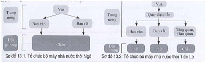 + Tổ chức bộ máy nhà nước thời Ngô, Tiền Lê được tổ chức theo chế độ quân chủ do vua đứng đầu, quyết định mọi công việc quan trọng của triều đình.