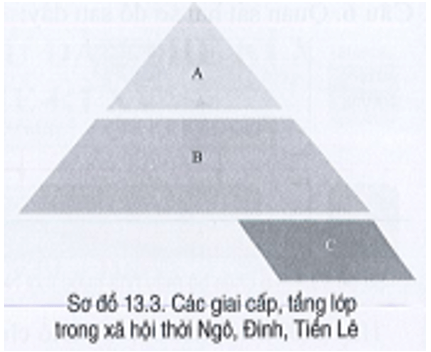 Hãy đặt các cụm từ trên vào các ô A. B. C trong sơ đồ 13.3 sao cho đúng với đời sống xã hội thời Ngô, Đinh, Tiền Lê và rút ra nhận xét,