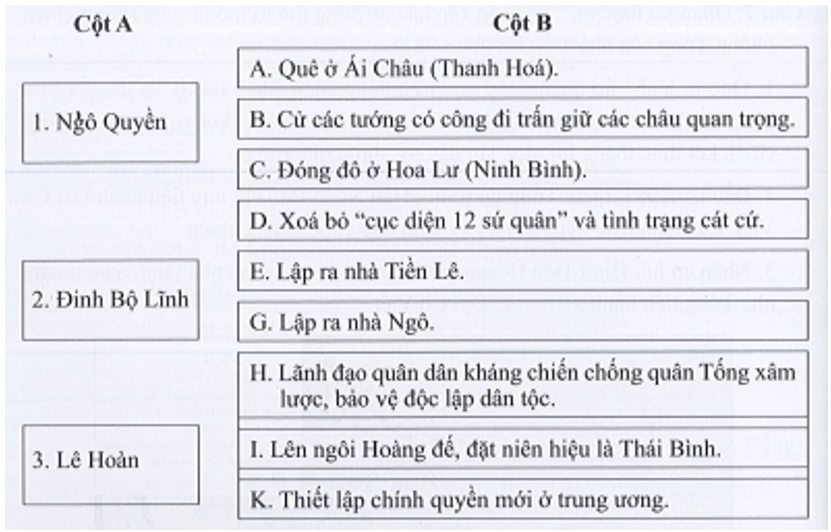Câu 9 trang 28 SBT Lịch Sử 7: Ghép ô ở cột A với các ô ở cột B sao cho đúng về thông tin các nhân vật
