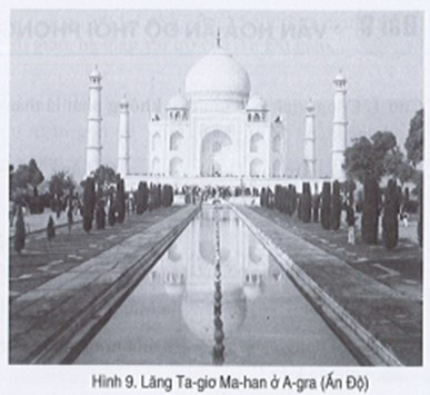 Câu 6 trang 20 SBT Lịch sử 7: Quan sát hình 9 và dựa vào hiểu biết của bản thân, hãy giới thiệu ngắn gọn về lăng Ta-giơ Ma-han theo những gợi ý sau: