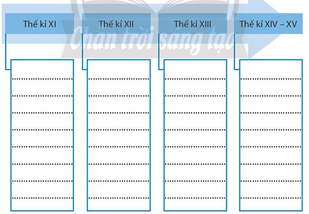 Bài tập 4 trang 8 SBT Lịch sử 7: Dựa vào nội dung trong SGK, hãy hoàn thành sơ đồ dưới đây: