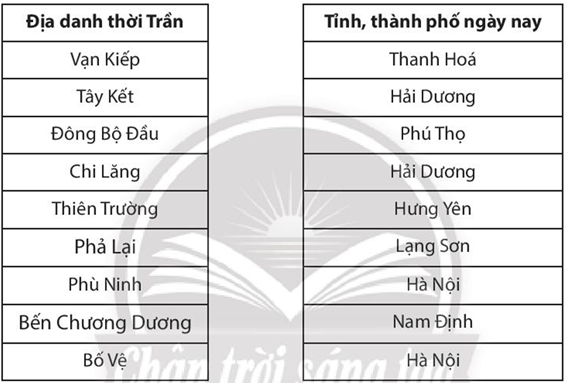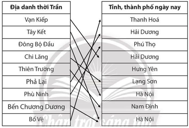 Bài tập 5 trang 56 SBT Lịch sử 7: Nối các địa danh thời Trần tương ứng với địa phương ngày nay.
