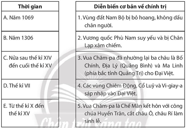 Bài tập 1 trang 69 SBT Lịch sử 7: Nối thời gian cột A cho phù hợp với diễn biến cơ bản về chính trị của vùng đất phía Nam ở cột B.