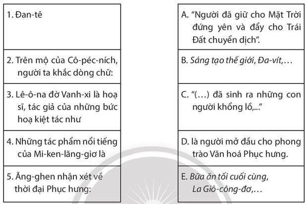 Bài tập 3 trang 17 SBT Lịch sử 7: Nối các dữ liệu ở cột bên trái với dữ liệu ở cột bên phải cho phù hợp.
