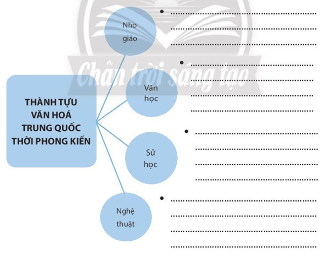 Bài tập 5 trang 26 SBT Lịch sử 7: Hoàn thành sơ đồ tư duy dưới đây về một số thành tựu văn hoá tiêu biểu của Trung Quốc.