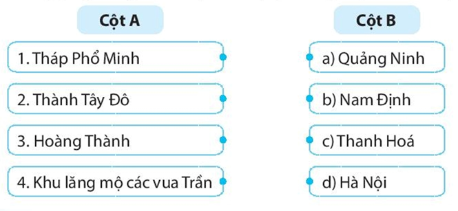 Bài tập 3 trang 43 SBT Lịch sử 7: Hãy ghép công trình ở cột A với địa phương ở cột B sao cho phù hợp.
