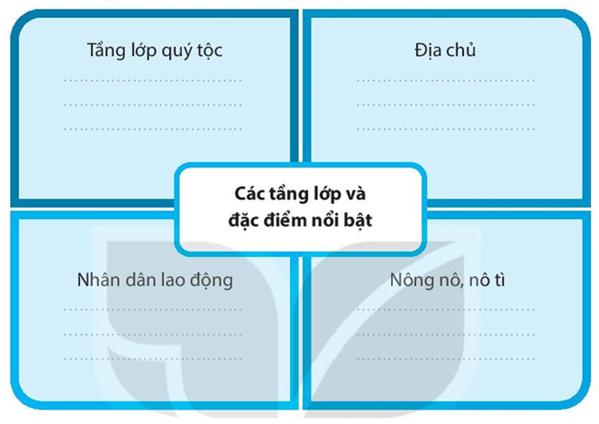 Bài tập 1 trang 45 SBT Lịch sử 7: Xã hội thời Trần tiếp tục có sự phân hóa. Em hãy hoàn thành sơ đồ (theo mẫu dưới đây) về đặc điểm của từng tầng lớp xã hội thời Trần.