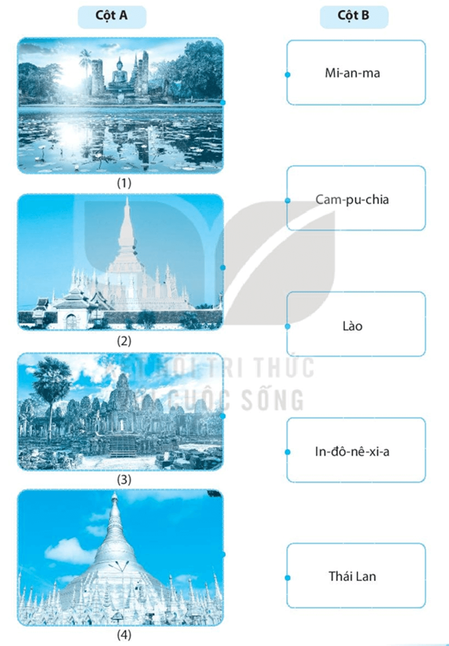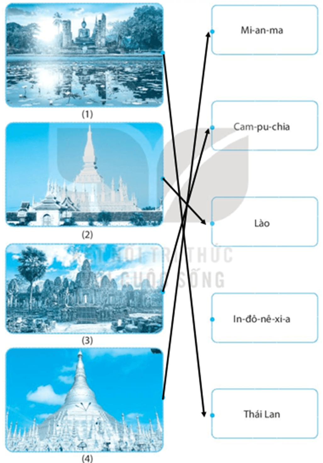 Câu 1.7 trang 24 SBT Lịch Sử 7: Nhiều công trình kiến trúc đền, tháp nổi tiếng đã được xây dựng ở các quốc gia Đông Nam Á giai đoạn này, ngoại trừ