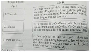 Câu 7 trang 28 SBT Lịch Sử 8: Ghép nội dung ở cột B với cụm từ ở cột A sao cho đúng về Chiến tranh thế giới thứ nhất.