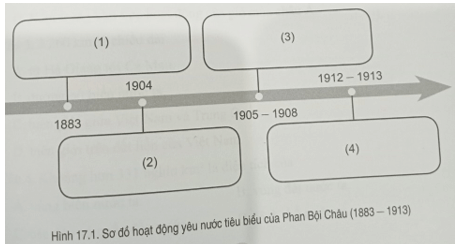 Câu 14 trang 47 SBT Lịch Sử 8: Chọn thông tin cho sẵn sau đây đặt vào các ô từ (1) đến (4) của sơ đồ trong hình 17.1: