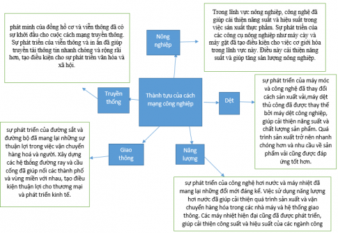 Câu hỏi 1: Hoàn thành sơ đồ dưới đây về một số thành tựu đã đạt được trong cách mạng công nghiệp