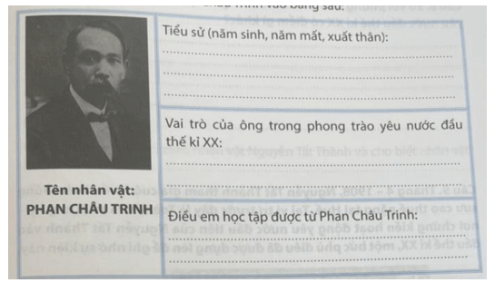 Câu 2 trang 66 SBT Lịch Sử 8: Hoàn thiện thẻ nhớ về Phan Châu Trinh vào bảng sau: