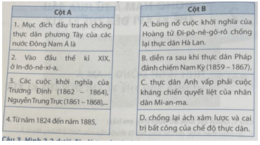 Bài 2 trang 14 SBT Lịch Sử 8: Em hãy nối các dữ liệu ở cột A với các dữ liệu ở cột B cho phù hợp.