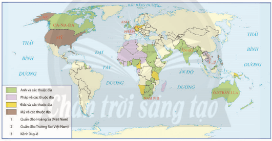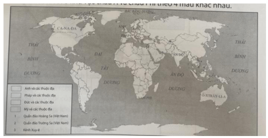Câu 1 trang 32 SBT Lịch Sử 8: Tô màu các đế quốc Anh, Pháp, Đức, Mỹ và thuộc địa của các nước đó vào đầu thế kỉ XX ở khu vực châu Á và châu Phi theo 4 màu khác nhau.
