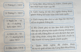 Bài tập 3 trang 56 SBT Lịch Sử 8: Hãy ghép mốc thời gian ở bên trái với ô thông tin ở bên phải sao cho phản ánh đúng lịch sử nước Nga trong những năm 1917 - 1918.