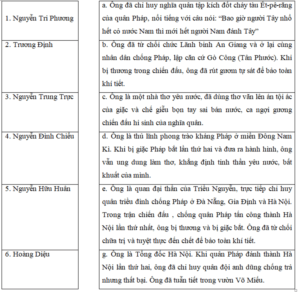 Bài tập 3 trang 80 SBT Lịch Sử 8: Hãy ghép tên nhân vật ở bên trái với thông tin ở bên phải sao cho phù hợp về nội dung lịch sử.
