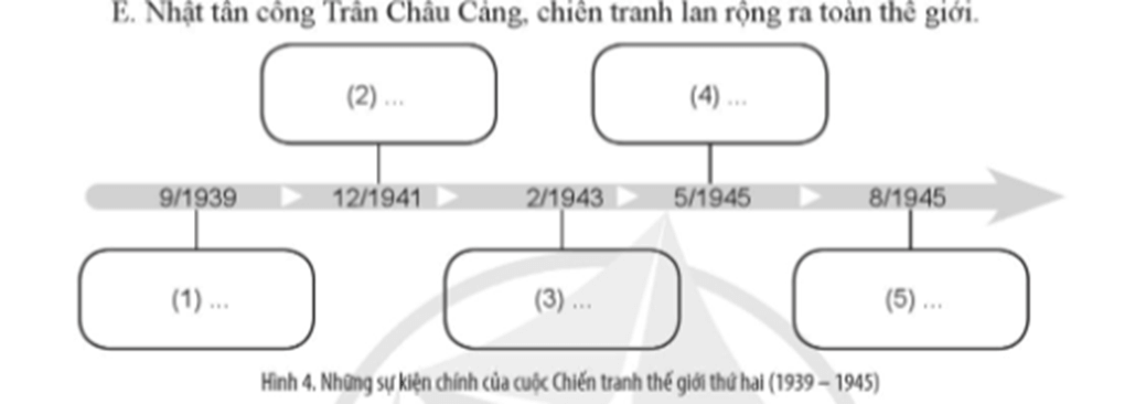 Câu 6. Chọn các cụm từ cho sẵn sau đây đặt vào chỗ chấm (... ) đã được đánh số trong sơ đồ (theo mẫu) để thể hiện diễn biến của cuộc Chiến tranh thế giới thứ hai.
