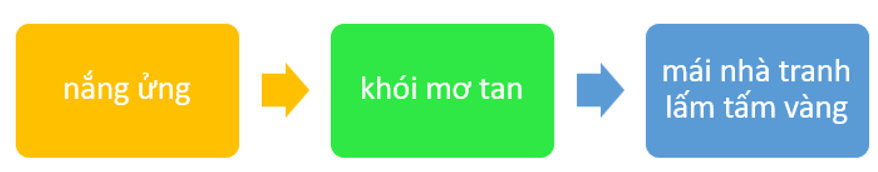 - Bài thơ vẽ ra một bức tranh xuân tươi tắn sắc màu, rộn rã âm thanh. Tác giả đã sử dụng một cách rất tinh tế những từ ngữ chỉ màu sắc (lấm tấm vàng, tà áo biếc, sóng cỏ xanh tươi) và từ ngữ chỉ âm thanh (sột soạt, tiếng ca vắt vẻo, hổn hển, thẩm thì). Các từ ngữ ấy đã kết hợp một cách khéo léo với hàng loạt động từ được gieo vào những vị trí rất “đắc địa” (ửng, tan, trêu, gợn, gặp, sực nhớ), nhằm gây ấn tượng về sự xuất hiện tiếp nối, liên hoàn của các hình ảnh nhờ một tác động thần diệu nào đó. Có thể biểu diễn ấn tượng này bằng một sơ đồ:
