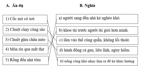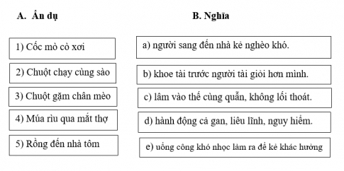 Câu 4: Ghép các ẩn dụ là thành ngữ ở cột A với các nghĩa phù hợp nêu ở cột B