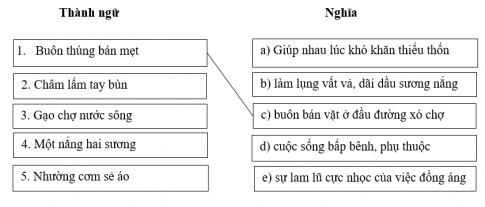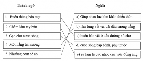 Câu 5: (Bài tập 5, SGK) Ghép thành ngữ ở cột bên trái với nghĩa tương ứng ở cột bên phải. Nếu tác dụng của biện pháp tu từ hoán dụ ở các thành ngữ này.