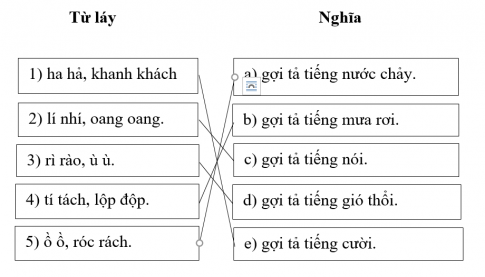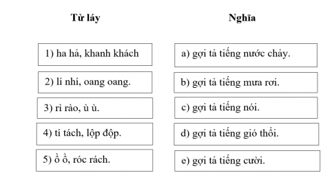 Câu 5: Ghép các từ láy ở cột bên trái với ý nghĩa tương ứng ở cột bên phải