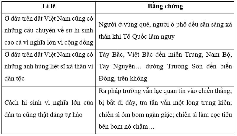 Câu văn nêu được ý chính của nội dung đó là: “Cách hi sinh vì nghĩa lớn của người con đất Việt cũng thật đáng tự hào, luôn ngẩng cao đầu, hướng về phía trước.”.