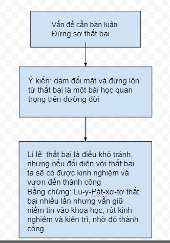 - Vẽ sơ đồ thể hiện mối quan hệ giữa ý kiến, lí lẽ, bằng chứng.