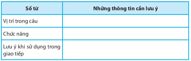 Bài tập 1: Hoàn thành những thông tin sau về số từ trong bảng sau: