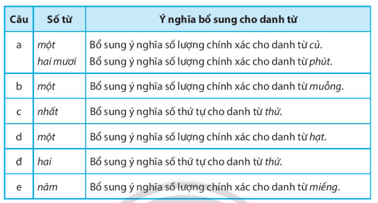 Bài tập 2: Tìm số từ trong các câu sau và xác định chức năng của chúng: