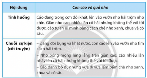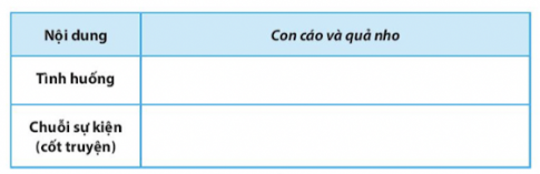 a. Với yêu cầu thứ nhất, có thể tóm tắt tình huống truyện, chuỗi sự kiện (cốt truyện) truyện Con cáo và quả nho nhu sau: