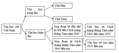 Câu 1. Dựa vào sơ đồ trong SGK, trang 127, em hãy trình bày hiểu biết của mình về văn học Việt Nam bằng một đoạn văn.