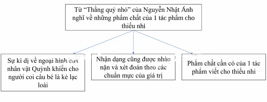 Đọc lại văn bản Từ “Thằng quỷ nhỏ" của Nguyễn Nhật Ánh nghĩ về những phẩm chất của một tác phẩm viết cho thiếu nhi (từ Vậy là, mọi nông nổi của Quỳnh đến không có quyền được phản biện) trong SGK (tr. 97) và chọn phương án trả lời đúng cho các câu hỏi: