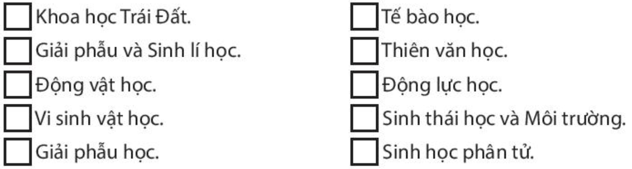 Bài 1.5 trang 6 sách bài tập Sinh học 10: Trong các lĩnh vực sau đây, đâu là các lĩnh vực nghiên cứu của sinh học?