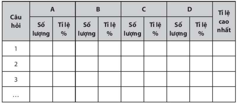 a) Phiếu câu hỏi gồm các câu hỏi dưới dạng trắc nghiệm hoặc trả lời ngắn. Học sinh có thể sử dụng phiếu khảo sát bằng giấy hoặc các công cụ trực tuyến. Ví dụ: