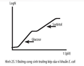 Bài 25.8 trang 76 sách bài tập Sinh học 10: Hình 25.1 mô tả đường cong sinh trưởng kép của vi khuẩn E.coli trong môi trường có hai nguồn carbon là glucose và sorbitol. Điều kiện để xảy ra quá trình phân hủy sorbitol là gì?