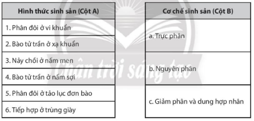 Bài 25.3 trang 75 sách bài tập Sinh học 10: Hãy nối hình thức sinh sản (Cột A) với cơ chế sinh sản (Cột B) sao cho phù hợp.