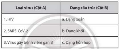 Bài 29.2 trang 89 sách bài tập Sinh học 10: Ghép tên loại virus (Cột A) sao cho phù hợp với dạng cấu trúc (Cột B).