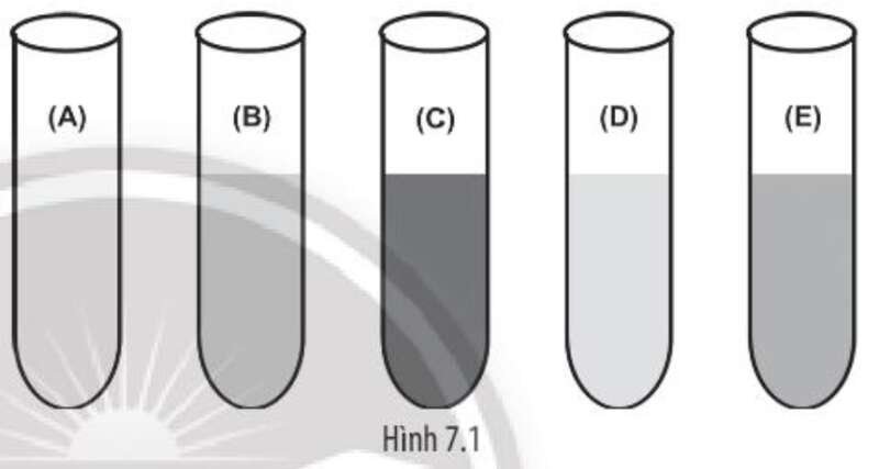 Bài 7.1 trang 22 sách bài tập Sinh học 10: Khi cho iodine vào các ống nghiệm sau đây, ống nào sẽ xuất hiện màu xanh tím?