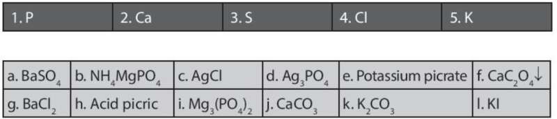 Bài 7.6 trang 23 sách bài tập Sinh học 10: Hãy ghép đúng hợp chất được tạo ra khi tiến hành nhận biết sự có mặt của một số nguyên tố khoáng trong tế bào.