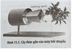 Câu 15.13 trang 52 SBT Sinh học 11: Một nhà thực vật học đã đặt cây nằm ngang trên máy hồi chuyển (Hình 15.3). Em hãy dự đoán phản ứng của thân và rễ cây đối với trọng lực sẽ như thế nào. Giải thích.
