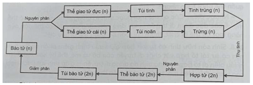 - Giai đoạn sinh sản hữu tính: tinh trùng (n) × trứng (n) → hợp tử (2n) → thể bào tử (2n).