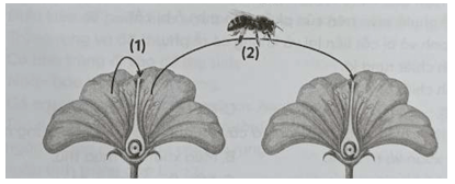 a) Phân biệt hai hình thức thụ phấn (1) và (2).