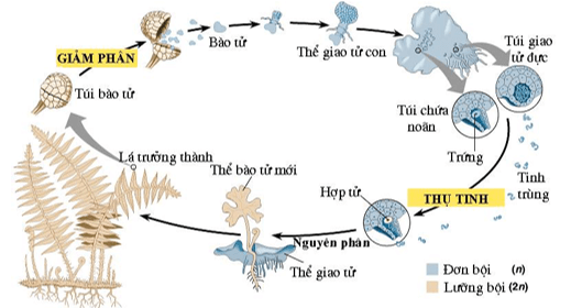 (5) Bào tử dương xỉ rơi xuống đất mọc thành nguyên tản.