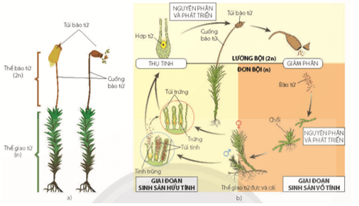 Câu 2 trang 86 SBT Sinh học 11: Trong vòng đời của rêu, cơ quan nào sau đây thuộc giai đoạn giao tử thể (n)?