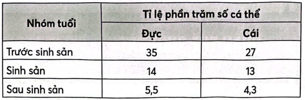 Câu 21.3: Khi nghiên cứu cấu trúc tuổi của một quần thể cá ở biển, người ta thu được các số liệu như bảng sau: