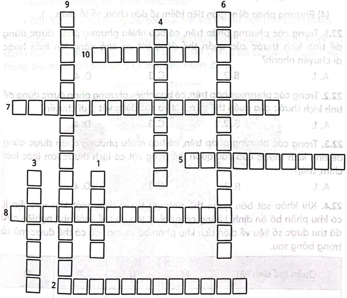 Câu 21.15: Hoàn thành các ô chữ dựa theo những gợi ý dưới đây.